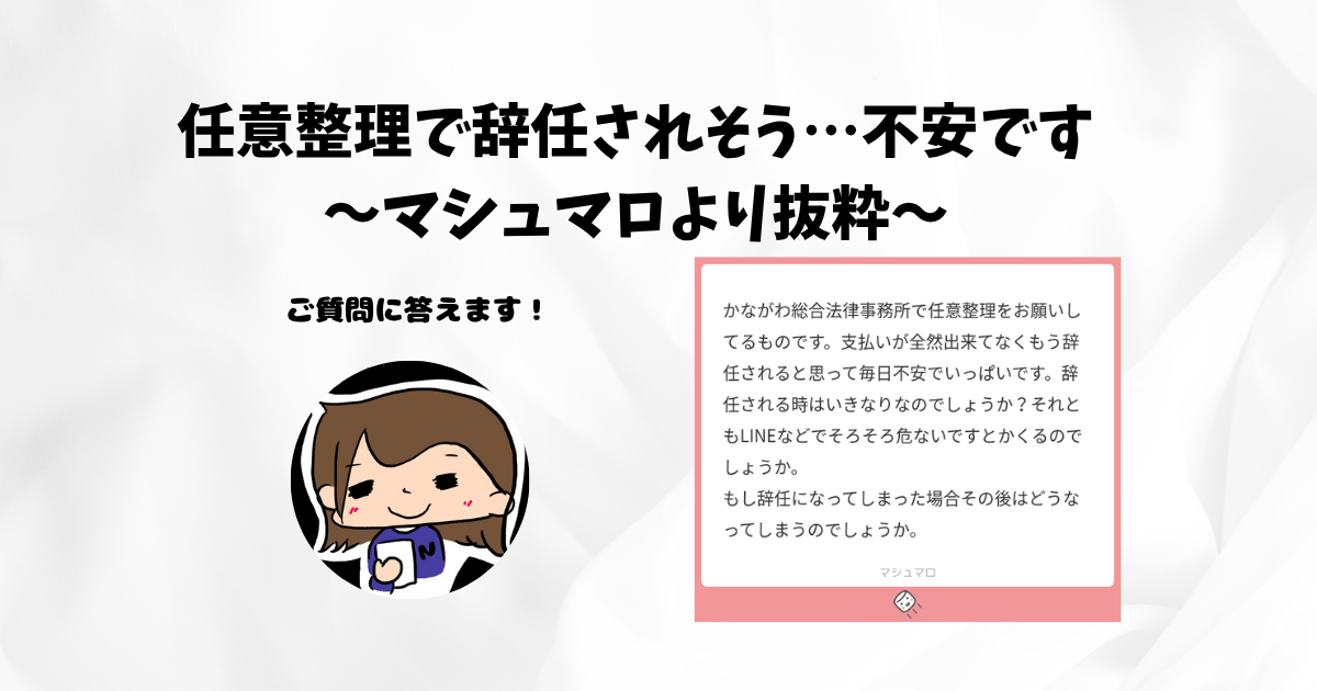 債務整理任意整理で辞任されそう…不安です〜マシュマロより抜粋〜 なつこです!今回もマシュマロから抜粋でブログ書きます。お題はこれ。任意整理で辞任になるまでの流れや、辞任になったあとはどうなるのか?どうすればいいのか?などをまとめました。(追記2025.9.7)マシュマロで辞任についての質問がかなり多いの... 2025.08.11 2025.09.15債務整理