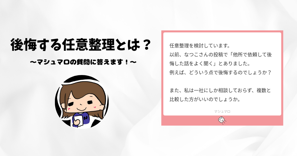 債務整理後悔する任意整理4つの特徴〜マシュマロより抜粋〜 なつこです!Xでマシュマロをはじめております!任意整理、滞納などなど借金に関することはなんでもどうぞ!「かながわ総合に依頼しました!」というマシュマロもいただくことがあり、選んでいただきありがたい気持ちで溢れています…さて、そんなマシュマロ... 2025.07.30債務整理